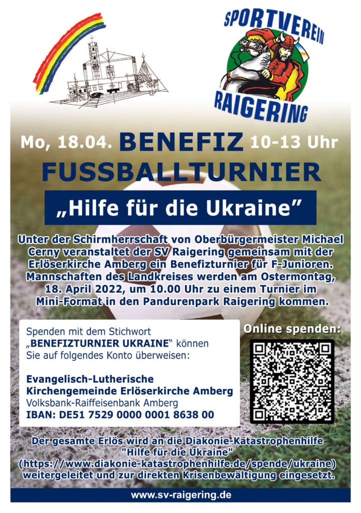 auch wir möchten die Gelegenheit nutzen und Spenden für die Ukraine sammeln. Dabei hat sich unsere Jugendabteilung eine tolle Aktion überlegt und gemeinsam mit der Erlöserkirche Amberg ein Benefizturnier organisiert.