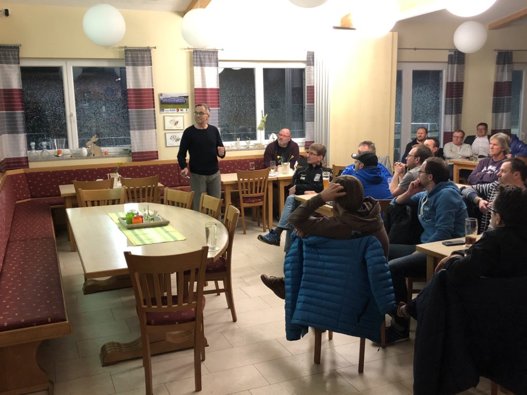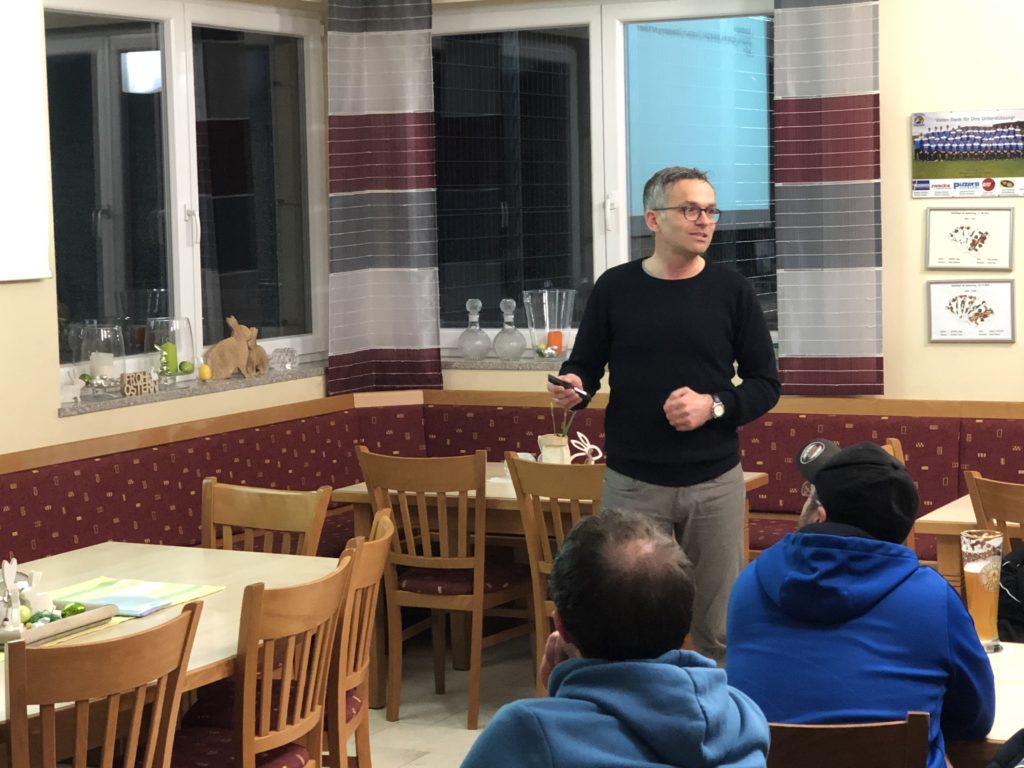 Nach der Begrüßung durch den Jugendleiter Christoph Grabinger erläuterte Dr. Edenharter anschaulich die Unterschiede beim Gestalten der Trainingseinheiten in Abhängigkeit der jeweiligen Altersstufe. An Beispielen erklärte er, welche Möglichkeiten des Trainings es gibt, um den zu Trainierenden den bestmöglichen Erfolg zukommen zu lassen.