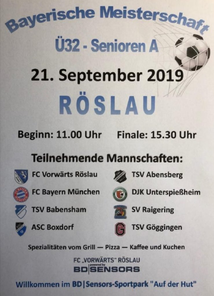 Der Bayerische Meister qualifiziert sich außerdem für die inoffizielle Deutsche Meisterschaft, den “15. Deutschen Altherren Supercup”.